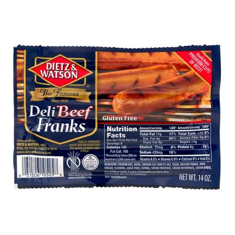 Dietz & Watson Deli Franks, Beef - 14 Ounces