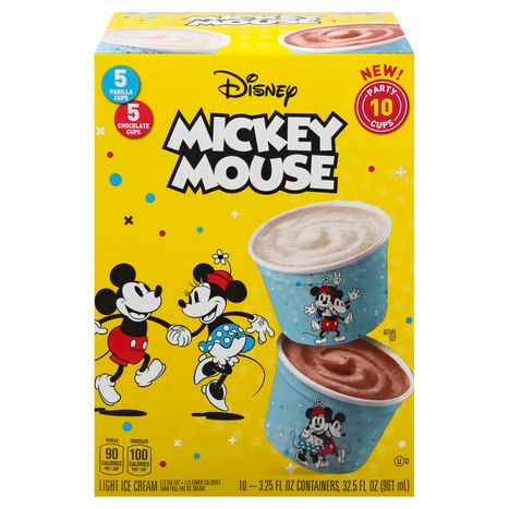 Disney Light Ice Cream, Vanilla Cups/Chocolate Cups, Mickey Mouse - 10 x 3.25 Fluid Ounce Containers