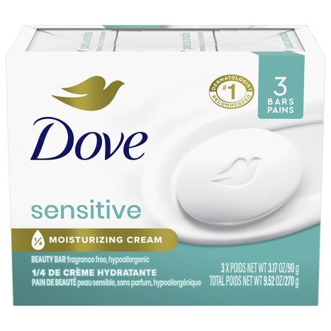 Dove Beauty Bar, Fragrance Free, Hypoallergenic, Sensitive - 3 x 3.17 Ounces