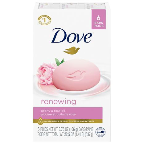 Dove Beauty Bar, Renewing, Peony & Rose Oil - 6 x 3.75 Ounces