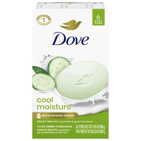 Dove Beauty Bar, with Cucumber & Green Tea Scent, Cool Moisture - 6 x 3.75 Ounces