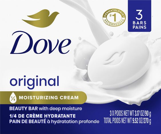 Dove Beauty Bar, with Deep Moisture, Original - 3 x 3.17 Ounces