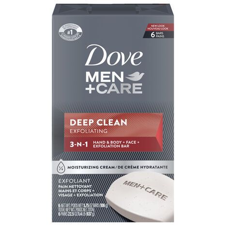 Dove Men+Care Bars, Hand & Body + Face + Exfoliation, Exfoliating, Deep Clean, 3-N-1 - 6 x 3.75 Ounces