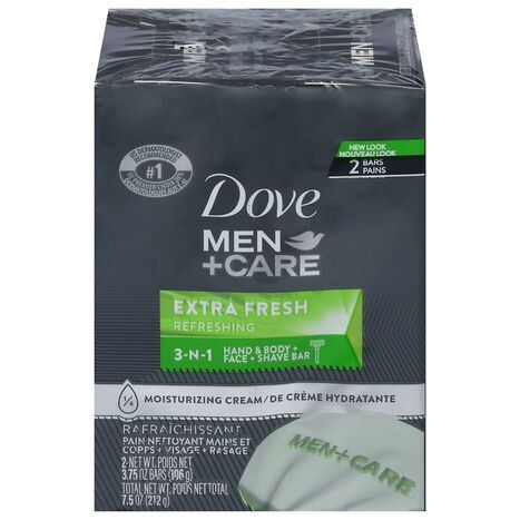 Dove Men+Care Hand & Body + Face + Shave Bar, Extra Fresh, Refreshing, 3-n-1 - 2 x 3.75 Ounces