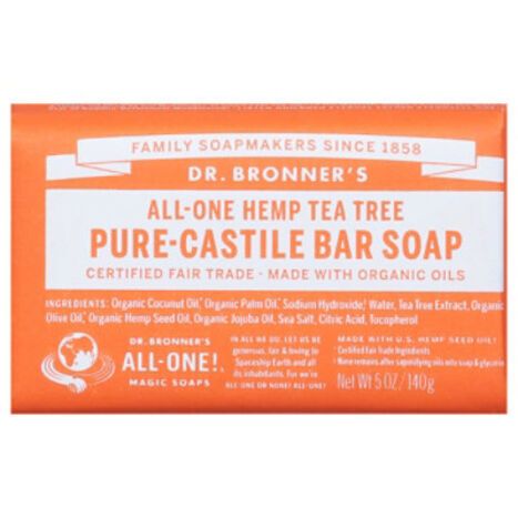 Organic Coconut Oil (Certified Fair Trade Ingredients), Organic Palm Oil (Certified Fair Trade Ingredients), Sodium Hydroxide (None Remains After Saponifying Oils Into Soap & Glycerin), Water, Organic Olive Oil (Certified Fair Trade Ingredients), Tea Tree Extract, Organic Hemp Oil, Organic Jojoba Oil, Sea Salt, Citric Acid, Tocopherol.
