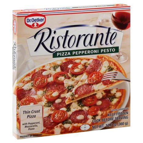 Enriched Flour (Wheat Flour, Niacin, Iron, Thiamin Mononitrate, Riboflavin, Folic Acid), Water, Tomato Puree, Mozzarella Cheese (Pasteurized Milk, Salt, Calcium Chloride, Enzymes, Cheese Culture), Cherry Tomatoes, Pepperoni (Pork, Salt, contains less than 2.0 percent of Spice and Coloring, Dextrose, Water, Onion Powder, Spice and Coloring Extracts, Garlic Powder, Ascorbic Acid, Sodium Nitrite, Lactic Acid Starter Culture, Sodium Ascorbate, Smoke), Edam Cheese (Pasteurized Milk, Salt, Cheese Culture, Enzymes, Calcium Chloride), Canola or Sunflower Oil, Canola Oil, Spice, Yeast (Contains Potato Starch), Sugar, Salt, Spinach, Olive Oil, Modified Corn Starch, Garlic Powder, Palm Oil, Paprika, Wheat Starch, Concentrated Lemon Juice, Hydrolyzed Canola and Corn Protein, Mono and Diglycerides, Corn Sirup Solids, Caramel Color, Flavoring, Citric Acid.