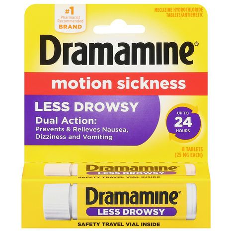 Dramamine Motion Sickness, Less Drowsy, Tablets - 8 x 25 Milligram Tablets