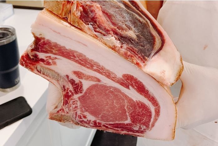 Berkshire Dry-Aged Pork Chop. Aged at our Butcher Shop to increase flavor and tenderness. Delicious!