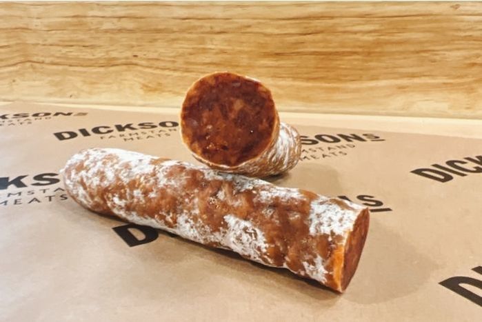 Spanish-style dry-cured pork salami made with 100% local Berkshire pork from Sir William Farm in Craryville, NY; seasoned with Pimenton (smoked paprika), Garlic & Red Wine.