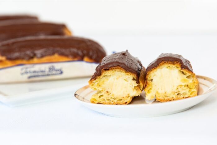 Pate a choux, vanilla pastry cream, chocolate fudge
