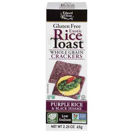 Edward & Sons Crackers, Gluten Free, Whole Grain, Purple Rice & Black Sesame, Rice Toast, Exotic - 2.25 Ounces