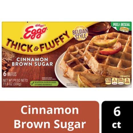 <bold>Enriched flour</bold> (wheat flour, niacin, reduced iron, vitamin B1 [thiamin mononitrate], vitamin B2 [riboflavin], folic acid), <bold>water</bold>, <bold>sugar</bold>, <bold>vegetable oil</bold> (soybean, palm, canola and/or cottonseed), <bold>brown sugar</bold>, <bold>leavening</bold> (sodium bicarbonate, sodium aluminum phosphate, monocalcium phosphate), <bold>contains 2% or less of</bold> molasses, cinnamon, salt, eggs, whey, soy lecithin. <bold>Vitamins and Minerals</bold>: Calcium carbonate, iron, vitamin A palmitate, vitamin B6 (pyridoxine hydrochloride), vitamin B12.