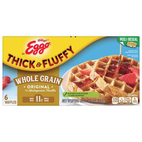 Eggo Waffles, Whole Grain, Original, Thick & Fluffy - 6 Waffles