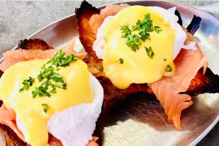 Eggs Benedict smoked salmon in a croissant