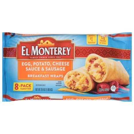 El Monterey Breakfast Wraps, Egg, Potato, Cheese Sauce & Sausage, 8-Pack Family Size - 8 x 28.8 Ounces