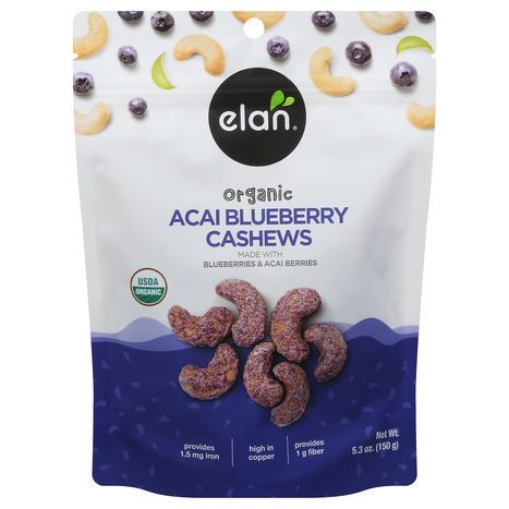 Elan Cashews, Organic, Acai Blueberry - 5.3 Ounces
