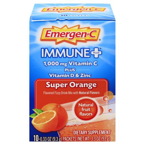 Emergen-C Vitamin C + Vitamin D & Zinc, 1000 mg, Super Orange - 10 x 0.33 Ounces