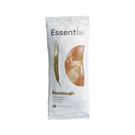 The Essential Baking Company makes high-quality, artisan breads and baked goods using wholesome ingredients. Their proprietary packaging allows you to keep your unopened, partially baked take & bake bread fresh in your pantry for months without freezing it. This traditional sourdough has a crisp, chewy, and golden crust. Remove from the packaging and bake for 12-16 minutes at 425 °F. Organic Unbleached Wheat Flour, Water, Sea Salt, Organic Barley Malt.