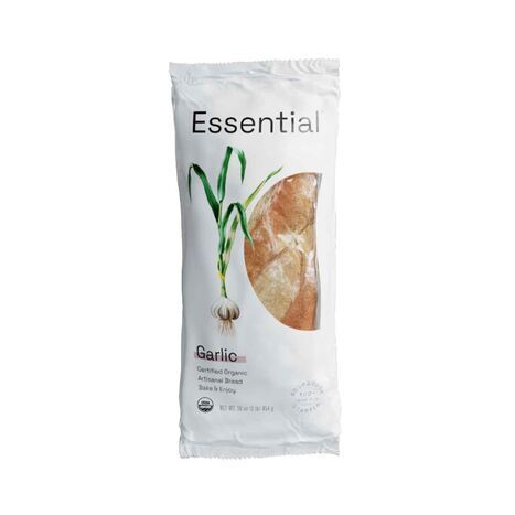 The Essential Baking Company makes high-quality, artisan breads and baked goods using wholesome ingredients. Its proprietary packaging allows you to keep your unopened, partially baked bread fresh in your pantry for months. All it takes is a quick trip to the oven for garlic bread with a crispy crust and chewy inside that's perfect for eating alongside your favorite soup or pasta. Organic Unbleached Wheat Flour, Water, Organic Palm Fruit Shortening, Organic Garlic Parmesan Spread Seasoning (Organic Garlic, Organic Parmesan Cheese Powder [Pasteurized Organic Milk, Salt, Cultures, Enzymes], Organic Oregano, Organic Sunflower Oil, Organic Rice Concentrate, Organic Parsley), Sea Salt, Organic Natural Butter Flavor, And Natural Flavor.