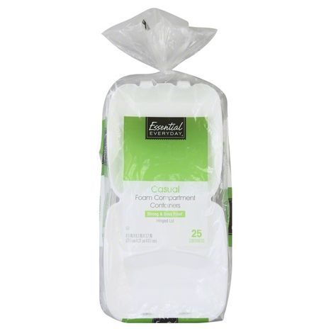 Essential Everyday Containers Foam Compartment Casual - 3 Count (64 Fluid Ounces Each)