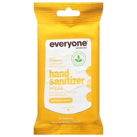 Everyone Hand Sanitizer Wipes, Coconut + Lemon, Towelettes - 15 Towelettes