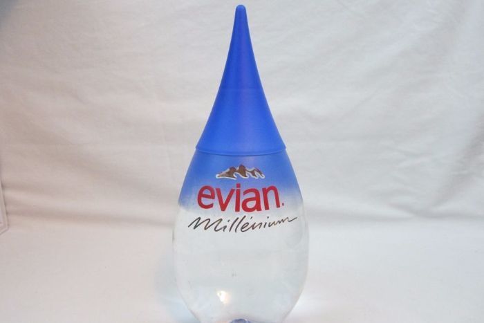 Evian Water Tear Drop Glass Bottle - 1 Liter