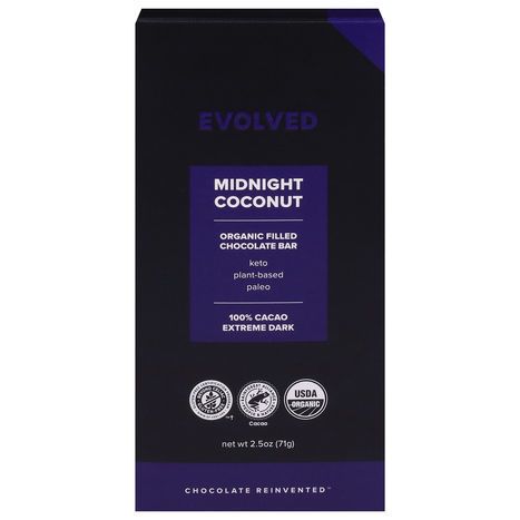 Evolved Chocolate Bar, Organic Filled, Midnight Coconut - 2.5 Ounces