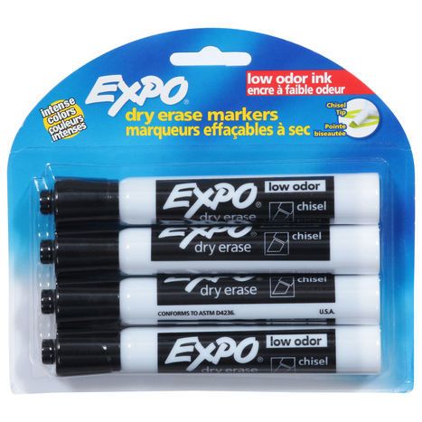 Expo Erase Markers, Dry, Low Odor Ink, Chisel Tip - 4 Markers