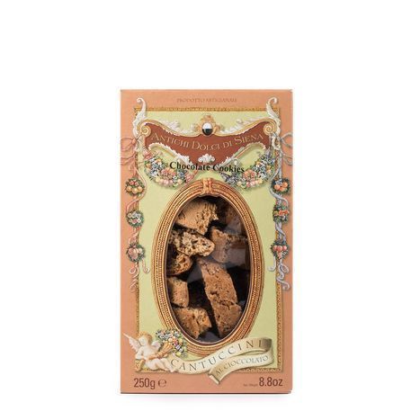 Cantuccio is a type of cookie that outside of Italy is called biscotto. In Italian Biscotto means cookie and Cantuccio is just one type of cookie traditional to the region of Tuscany. Cantucci are historically from the Montalcino area, Ossi di Siena and they were prepared especially for the holidays. Nowadays to create something unique, Fabbrica del Panforte adds drops of chocolate twist to the classic Cantucci but still using only simple, fresh and natural ingredients.nnnLa Fabbrica del Panforte was founded in 1994 with the aim to promote the unique confectionery culture of Siena. This small medieval city is known for delicious cuisine that is important to Tuscan’s local culture and history. To maintain authentic flavors, Fabbrica del Panforte uses simple, quality ingredients and recipes inherited from master bakers. These Sienese sweets are considered a hallmark of the nature, culture and lifestyle of the people of Siena: simple, sincere, and original. nnnEnjoy Cantucci with tea or coffee. Traditionally, in Italy this cookie is dipped in Vin Santo wine or aged grappa.