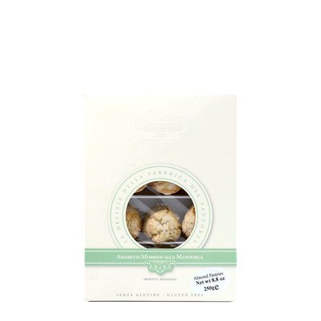Soft Almond Amaretti from La Fabbrica del Panforte are dome-shaped cookies crisp and crunchy on the outside and soft, or ‘morbidi’ in Italian, on the inside. \nThese artisan handcrafted cookies are made with only few ingedients 47% almonds, sugar, egg white and honey. If you have never before, now you need to try these tasty and exquisite almond amaretti!\n\n\nLa Fabbrica del Panforte was founded in 1994 with the aim to promote the unique confectionery culture of Siena. This small medieval city is known for delicious cuisine that is important to Tuscan’s local culture and history. To maintain authentic flavors, Fabbrica del Panforte uses simple, quality ingredients and recipes inherited from master bakers. These Sienese sweets are considered a hallmark of the nature, culture and lifestyle of the people of Siena: simple, sincere, and original. \n\n\nDelicious on their own or enjoy them with coffee, tea, cappuccino or dessert wine.