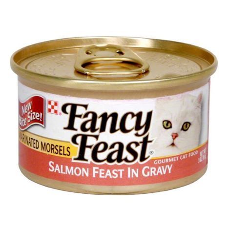 Fish Broth Meat By-Products Salmon Wheat Gluten Chicken Corn Starch-Modified Natural and Artificial Flavors Soy Flour Tricalcium Phosphate Caramel Color Salt Titanium Dioxide Color Potassium Chloride Taurine Choline Chloride Vitamin E Supplement Red 3 Thiamine Mononitrate Ferrous Sulfate Zinc Sulfate Manganese Sulfate Vitamin A Supplement Pyridoxine Hydrochloride Copper Sulfate Niacin Dicalcium Phosphate Calcium Pantothenate Riboflavin Supplement Vitamin D-3 Supplement Cobalt Carbonate Vitamin B-12 Supplement Menadione Sodium Bisulfite Complex (Source of Vitamin K Activity) Folic Acid Potassium Iodide Biotin