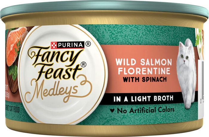 Fancy Feast Gourmet Wild Salmon Florentine with Spinach Cat Food in a Light Broth - 3 Ounces