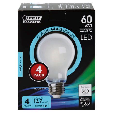 Feit Electric Light Bulbs, LED, Daylight, 8.8 Watts, 4 Pack - 4 Light Bulbs
