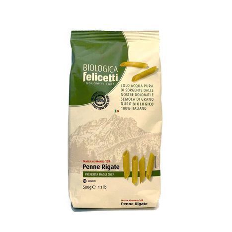 The Organic Penne Rigate pasta from Felicetti is made with high quality organic durum wheat and water from the Dolomite Mountains.