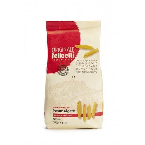 Penne Rigate pasta from Felicetti is made with high quality durum wheat and water from the Dolomite Mountains.