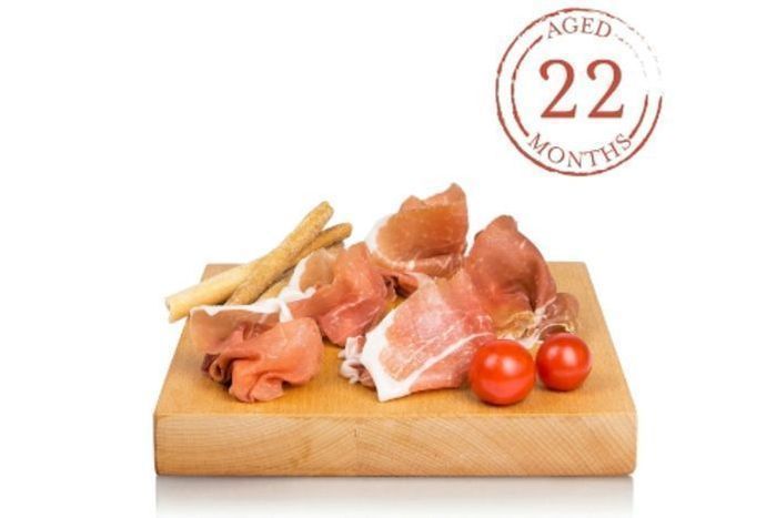 Produced in Langhirano, Parma, Ferrarini’s Prosciutto di Parma DOP is made from high-quality pork legs that are slowly cured in temperature-controlled cellars and aged for 22 months, developing a sweet and delicate flavor from just sea salt, air from the Parma hills, and time.