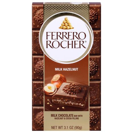 Ferrero Rocher Milk Hazelnut Milk Chocolate Bar with Hazelnut and Cocoa Filling - 3.1 Ounces