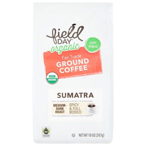 Field Day Coffee, Organic, Fair Trade, 100% Arabica, Ground, Medium-Dark Roast, Sumatra - 10 Ounces