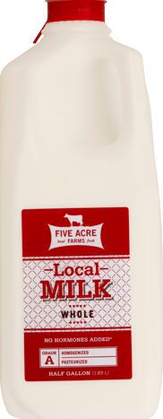Five Acre Farms Milk, Local, Whole - 0.5 Gallons
