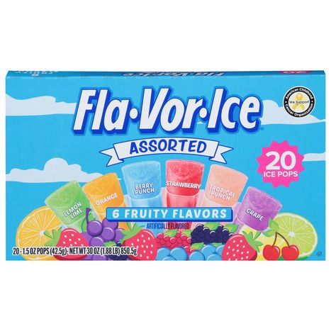 Fla-Vor-Ice Ice Pops, 6 Fruity Flavors - 20 x 1.5 Ounces