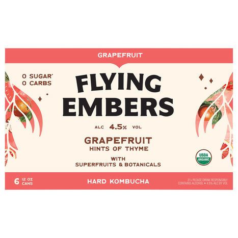 Flying Embers Hard Kombucha, Grapefruit - 6 x 12 Ounce Cans