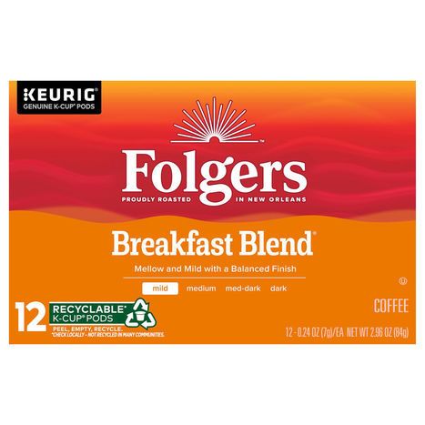 Folgers Coffee, Mild, Breakfast Blend - 12 x 0.24 Ounces