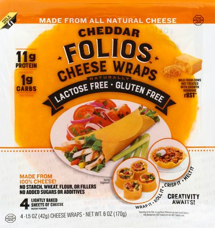 Folios Cheese Wraps, Cheddar - 4 x 1.5 Ounces