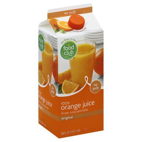 Food Club 100% Juice, No Pulp, Orange, Original - 64 Ounces
