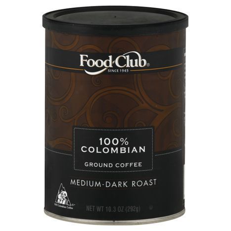 Food Club Coffee, Ground, Medium-Dark Roast, 100% Colombian - 10.3 Ounces