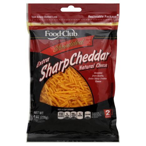 Food Club Shredded Cheese, Extra Sharp Cheddar - 8 Ounces