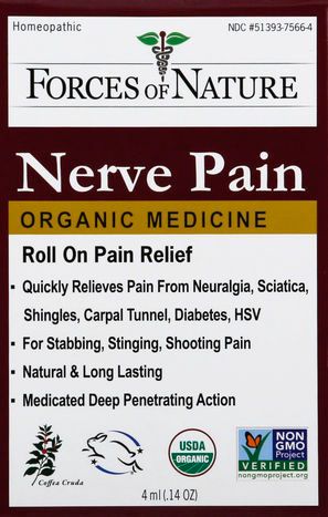 Forces of Nature Nerve Pain, Organic, Roll On, Coffea Cruda - 0.14 Ounces