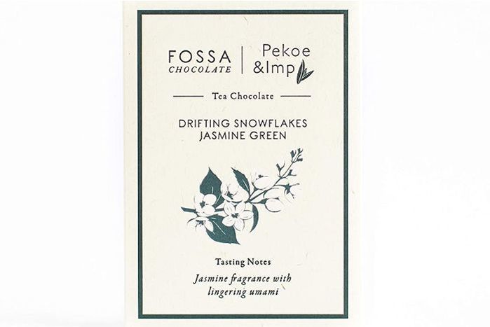 Fossa Chocolate, Drifting Snowflakes, Jasmine Green Chocolate Bar - 50 Grams