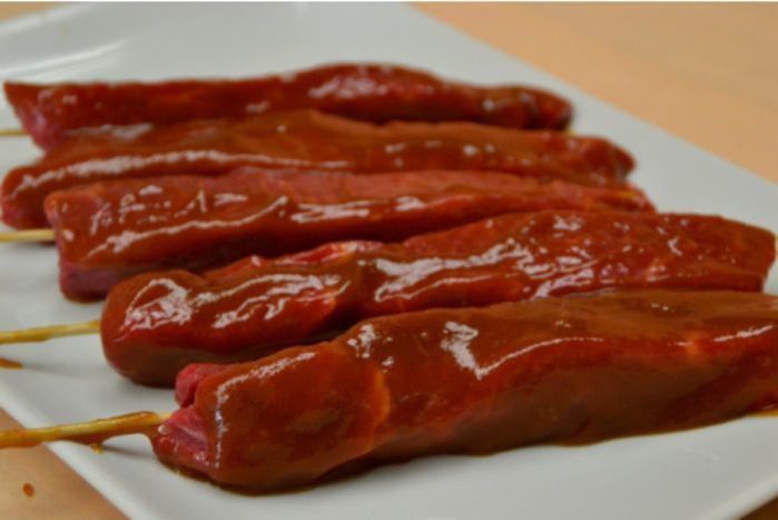 Four Beef on a Stick Marinated in Korean Sesame Sauce