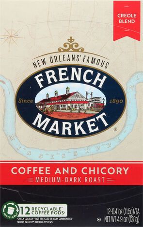 French Market Coffee and Chicory, Medium-Dark Roast, Creole Blend, Coffee Pods - 12 x 0.41 Ounces